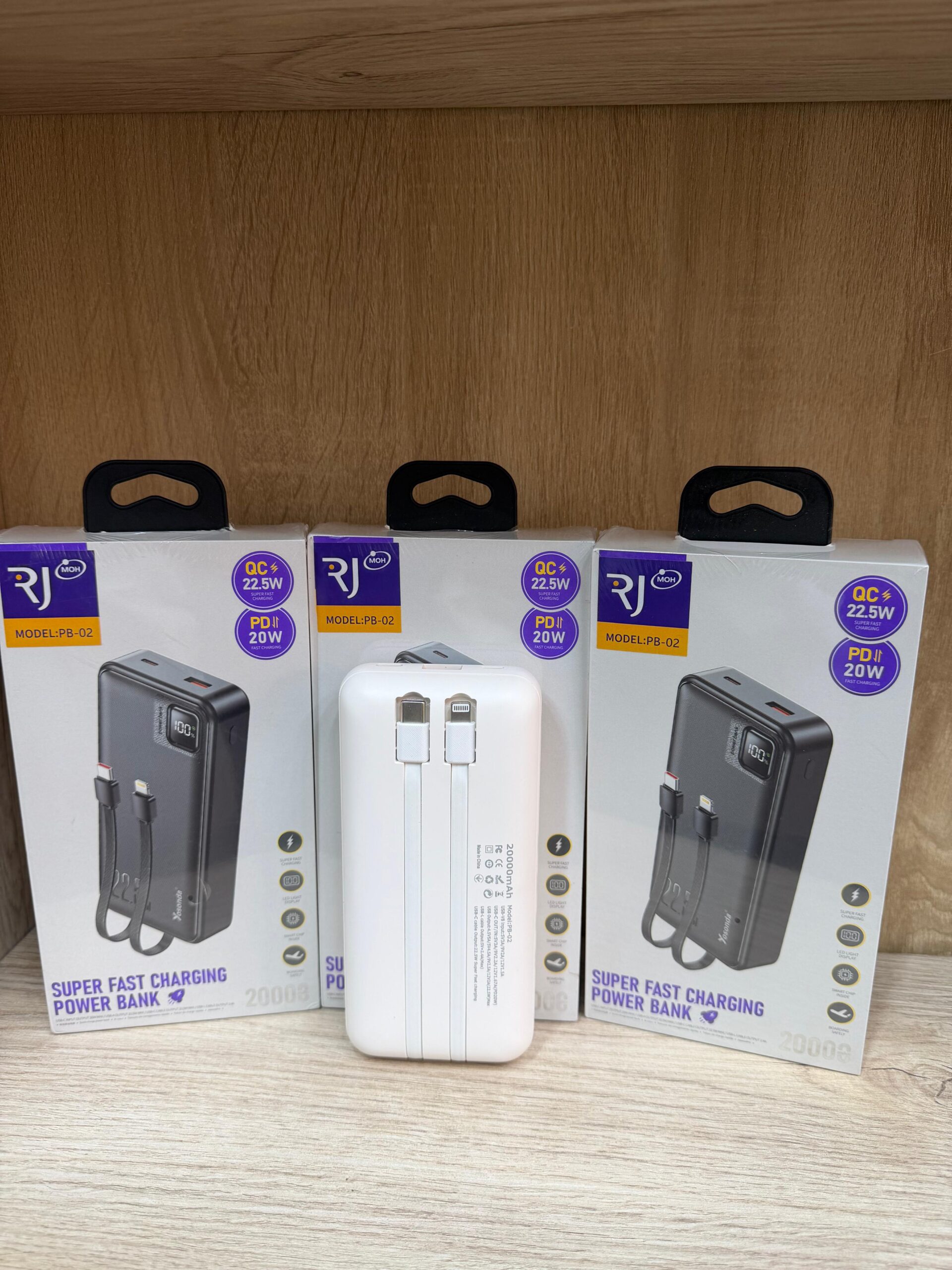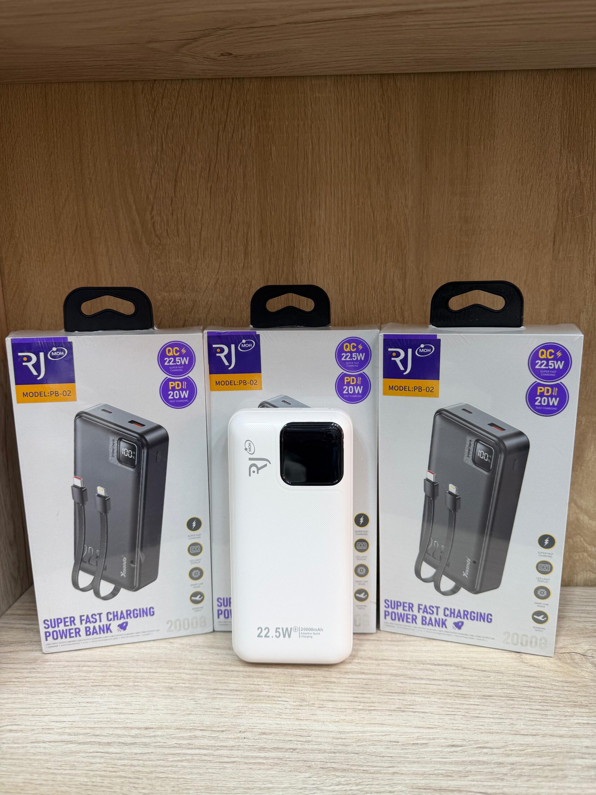 RJ PB-02 20000mAh Power Bank – 22.5W Super Fast Charging with Built-in Cables